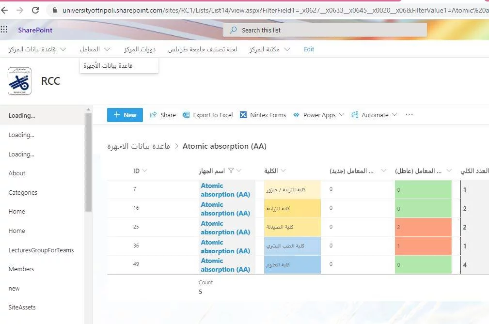 ضمن قاعدة بيانات الجامعة تم تفعيل الوصول الى قائمة الأجهزة الرئيسية الموجودة بكافة كليات الجامعة.