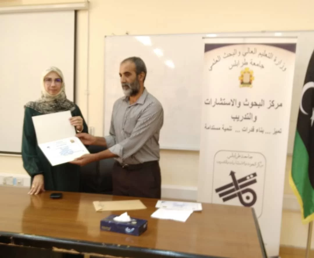 تم اليوم الخميس الموافق29/09/2022 اختتام الدورة التدريبية في أساسيات الحاسوب شارك فى الدورة التدريبية موظفي وأعضاء هيئة التدريس بجامعة طرابلس وأشرف على تنفيذ الدورة التدريبية ، أ. منار العريف عضو هيئة تدريس بكلية تقنية المعلومات.