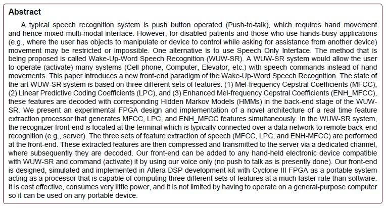Front-end of Wake-Up-Word Speech Recognition System Design on FPGA