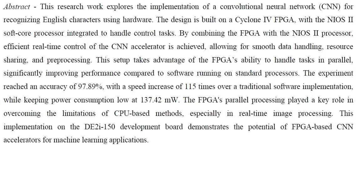 Design and Implementation of Optimized CNN for Character Recognition on FPGA-based NIOS II Embedded Processor