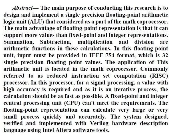 Design and Implementation of Single Precision Floating Point Arithmetic Logic Unit for RISC Processor on FPGA