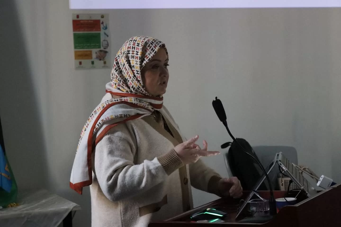 من خلال الانشطة التوعوية والثقافية والعلمية التي يشارك بها السادة الموظفين وفنيي المعامل بكلية العلوم خلال العام الجاري في كافة الأقسام العلمية.. قامت الأستاذة : نجوى خليفة الشاوش الموظفة بقسم الرياضيات بعرض محاضرة بعنوان ( دور إدارة المعرفة في تطوير التعليم الجامعي) يوم الثلاثاء 21/1/2025م حضره
