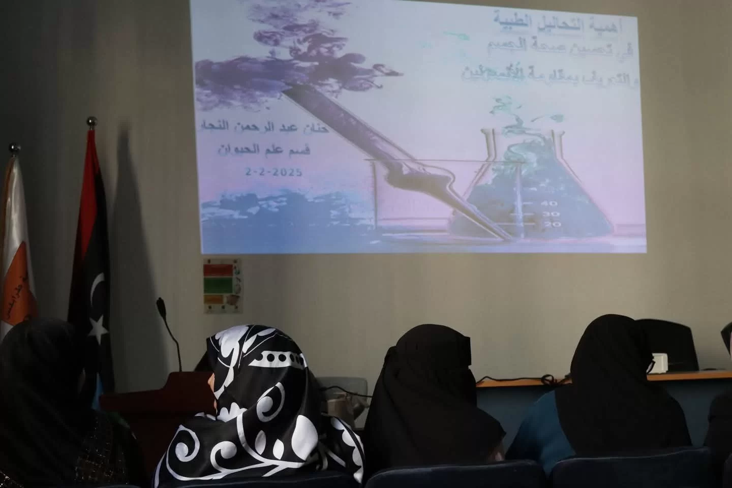 من خلال الانشطة التوعوية والثقافية والعلمية التي يشارك بها السادة الموظفين وفنيي المعامل بكلية العلوم خلال العام الجاري في كافة الأقسام العلمية.. قامت الأستاذة : حنان عبدالرحمن النجار الموظفة بقسم علم الحيوان بعرض محاضرة بعنوان ( أهمية التحاليل الطبية في تحسين صحة الجسم والتعريف بمقاومة الأنسولين) اليوم الاحد 02/02/2025م حضرها كلاً من مدير الشؤون الادارية ونقيب الموظفين ورئيس قسم علم الحيوان ولفيف من أعضاء هيئة التدريس وموظفي الاقسام العلمية.