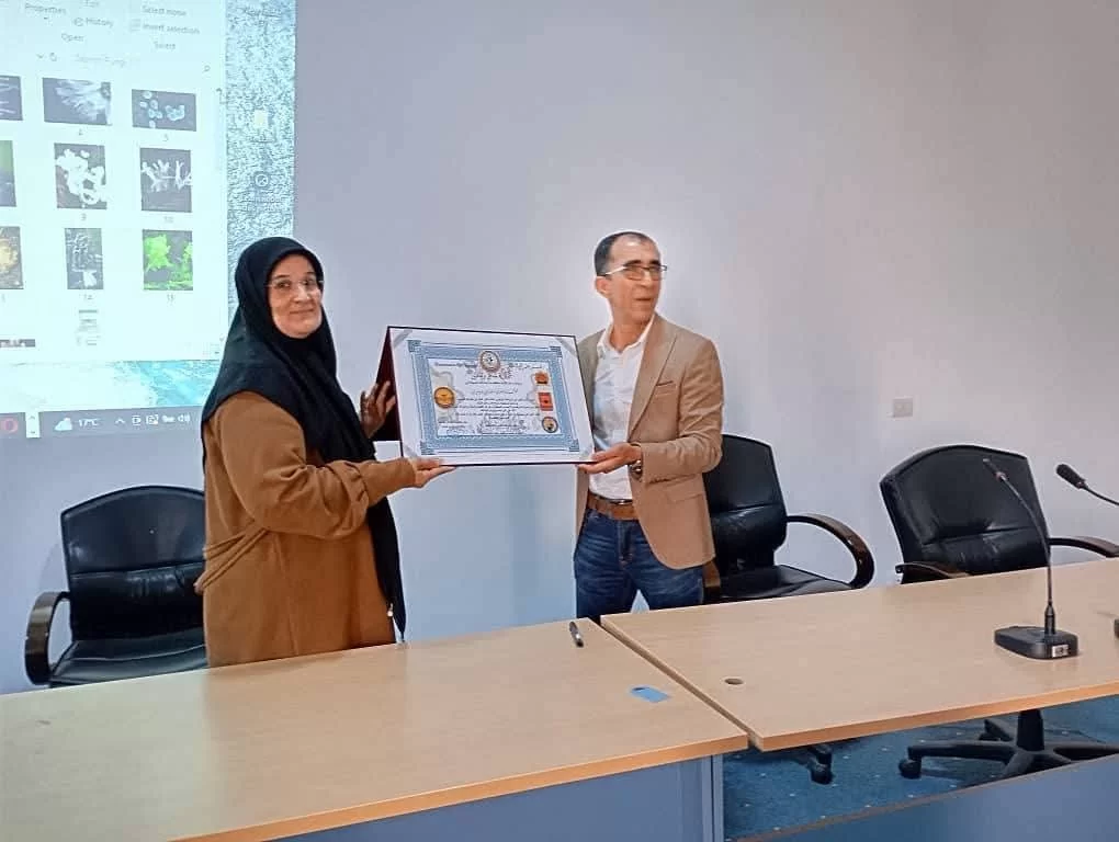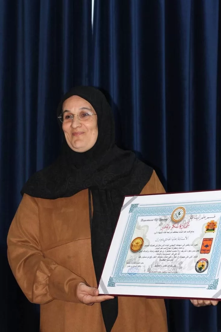 حيث كانت محاضرة مميزة وتوعوية بشأن الفطريات ودورها في حياتنا،، كما قام موظفي قسم علم النبات بتقديم شهادة تقدير لرئيس قسم علم النبات د.عالية دوزان لما قدمته للقسم منذو توليها رئاسته.
