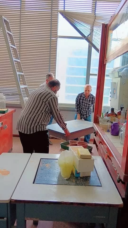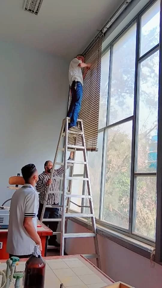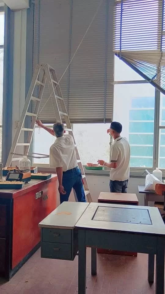 جانب من أعمال صيانة بعض مرافق الكلية هذا اليوم الأحد 4/5/2025 شملت صيانة بعض أجهزة التكييف وتوريد وتركيب ستائر لبعض المكاتب بالأقسام العلمية شارك فيها الشباب موظفي الكلية... تحية للرجال.