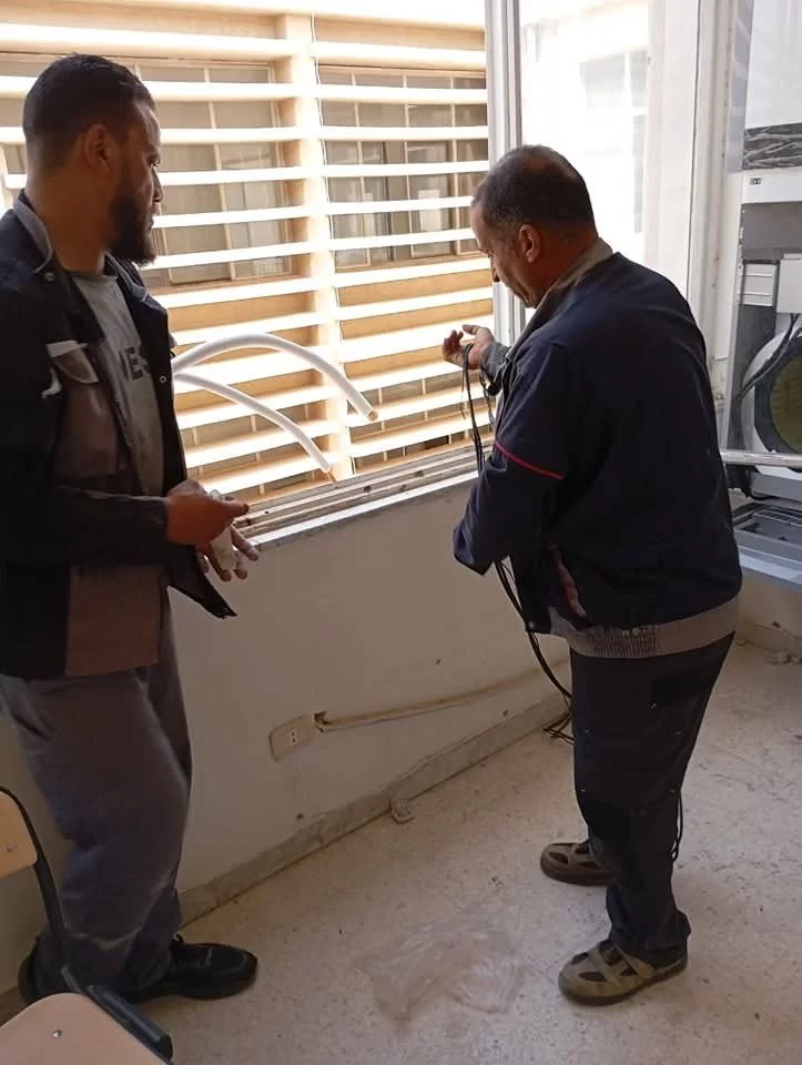نتقدم بكامل الشكر والتقدير والاحترام للسادة فنيي مكتب الشؤون الفنية بالجامعة والسيد م. وسام التير على تنفيذ تركيبات جهاز التكييف قوة 48 بقاعة قسم الإحصاء بالكلية ونتمني ان يستمر التعاون بين إدارة المكتب والكلية وذلك لتوفير بيئة عمل لائقة بمنتسبي كلية العلوم