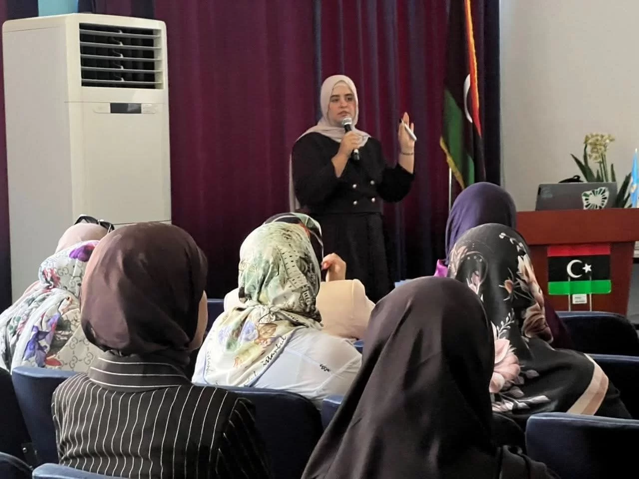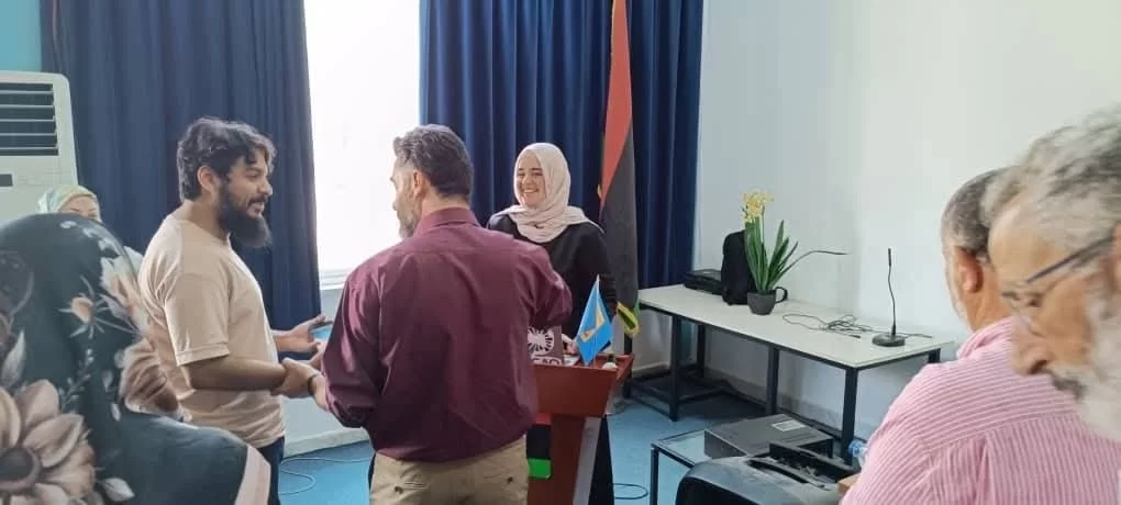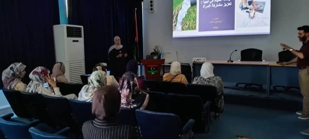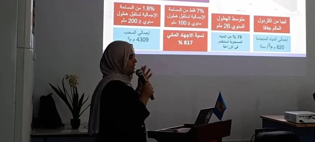 استكمالاً لتنفيذ ورش العمل التوعوية والانشطة الثقافية والعلمية التي يشارك بها السادة الموظفين وفنيي المعامل والبحاث بكلية العلوم خلال العام الجاري في كافة الأقسام العلمية.. قامت الأستاذة : ياسمين الأحمر الباحثة بقسم علم الجيولوجيا بعرض محاضرة بعنوان ( حوكمة المياه في ليبيا: تعزيز دور المرأة ) يوم الثلاثاء 23/06/2025م حضرها كلاً من مدير الشؤون الادارية ونقيب الموظفين ولفيف من أعضاء هيئة التدريس وموظفي الاقسام العلمية والمهتمين بهذا الشأن،