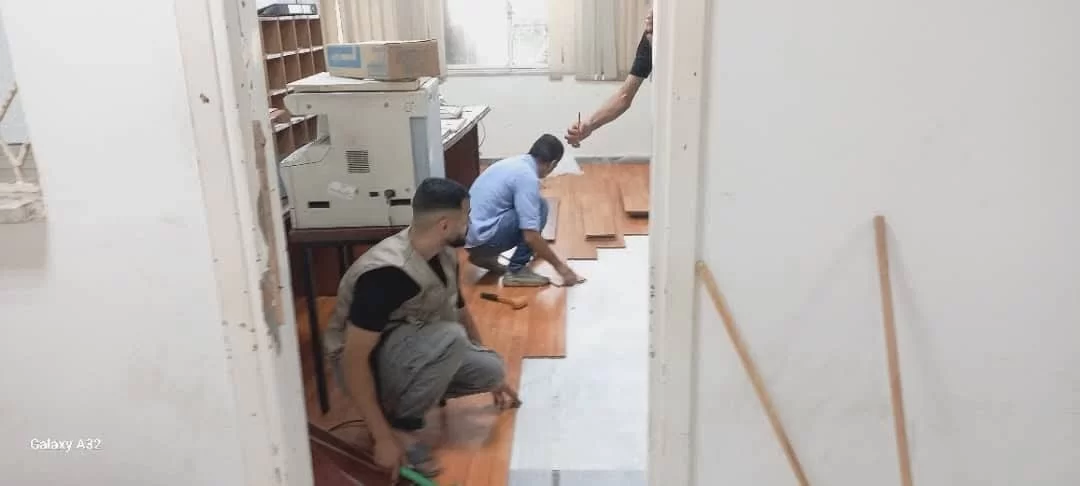 تم بعزم الشباب ورجال الكلية ظهيرة اليوم الاحد 29/06/2025م توريد وتركيب أرضية خشبية نوع بركيه ،نُفذت بمكتب وحدة المحفوظات بالكلية، تحسيناً للمظهر العام وتوفير بيئة عمل لائقة وفق ماهو متاح من امكانيات.
