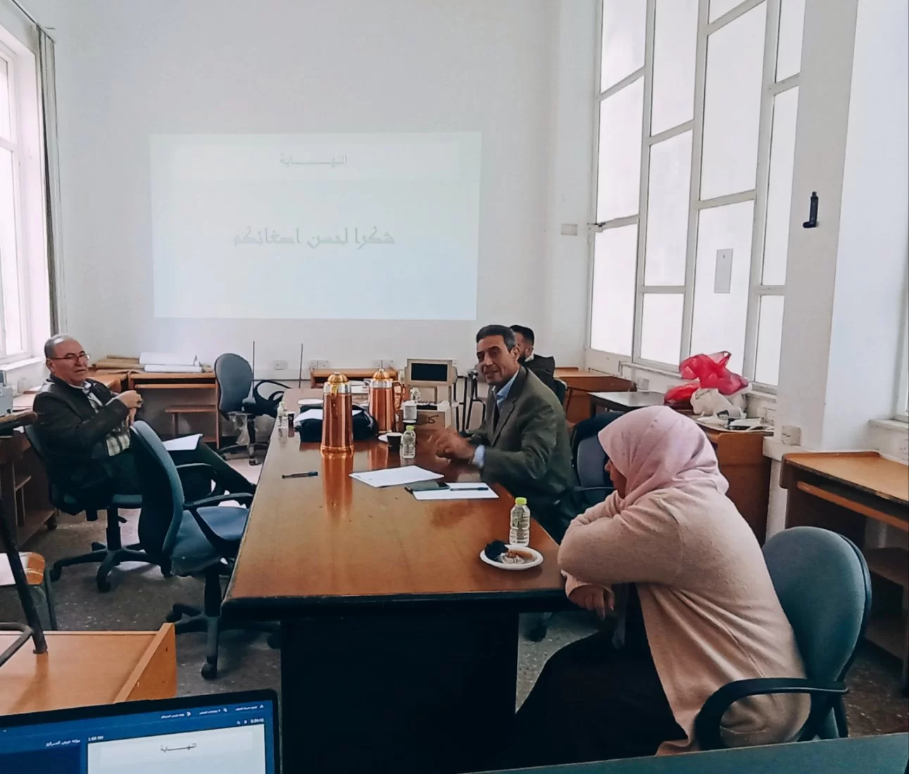 On Thursday, 25 January 2024, in the Department of Atmospheric Science, attended by some faculty members and postgraduate students, discussed the proposal for the postgraduate thesis (Master's degree), entitled: Monitoring the impact of air pollution on the characteristics of the city of Tripoli. Student: Mofida Ahmad albourawi. Under the supervision of Prof.Dr. Ali Ghaith Eljadid.