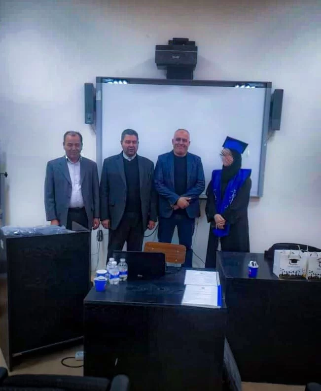 تم اليوم الخميس الموافق 30/01/2025 مناقشة رسالة طالبة الماجستير سهام أحمد محمد خليفة التابعة لقسم علم النبات بقاعة المناقشات بمكتب الدراسات العليا بالكلية.