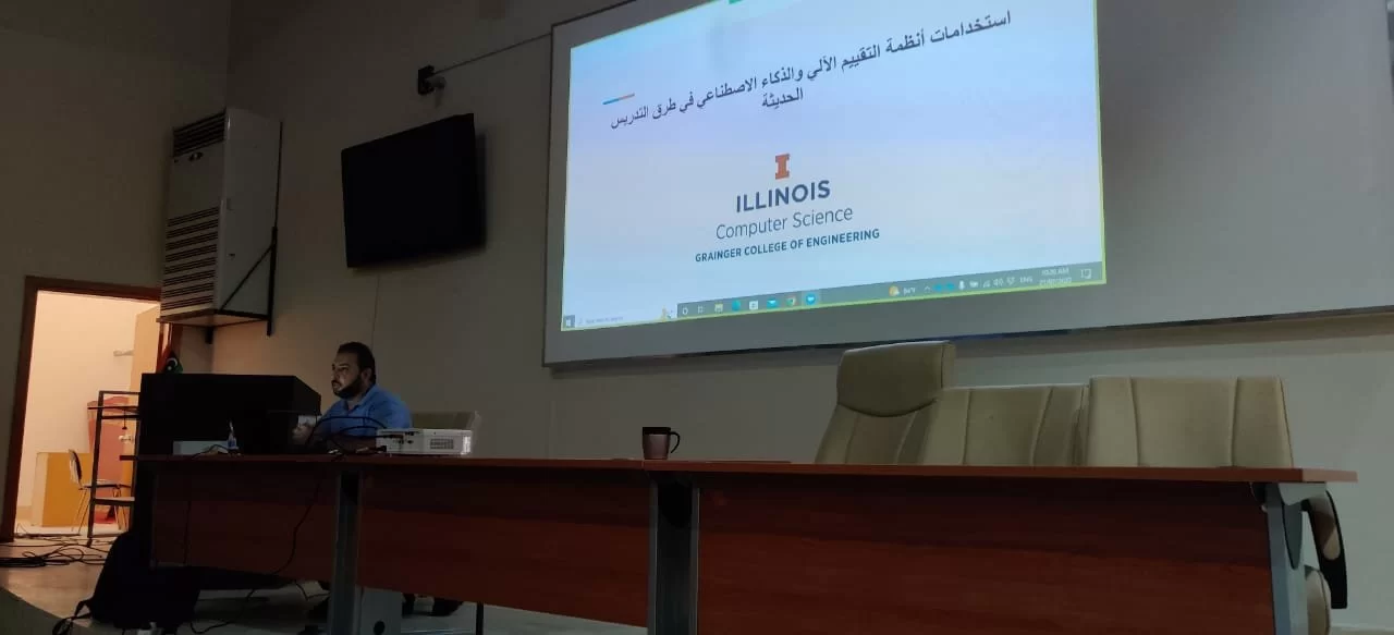 من ضمن نشاطات قسم علم الحاسب الآلي وبتنسيق مع مكتب التعاون الدولي بالكلية ، أقيمت محاضرة بعنوان : استخدامات أنظمة التقييم الآلي والذكاء الاصطناعي في طرق التدريس الحديثة وذلك يوم الخميس 21/07/2022 بمسرح منصور مخلوف بمبنى قسم علم الكيمياء بكلية العلوم. حيث قام د. عبدالسلام العويني بعرض طرق التدريس ال