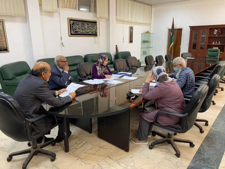 عقد صباح اليوم الخميس 28 أبريل 2022 اجتماعا بقاعة الاجتماعات بالكلية برئاسة السيد العميد أ.د. رمضان المبروك الجدي ، ضم كلاً من السيدة أ. د. ربيعة الغزير وكيل الكلية للشؤون العلمية والسيد مدير مكتب الدراسات العليا بالكلية والسادة منسقي الدراسات العليا بالاقسام العلمية بالكلية .تناول الاجتماع الملا