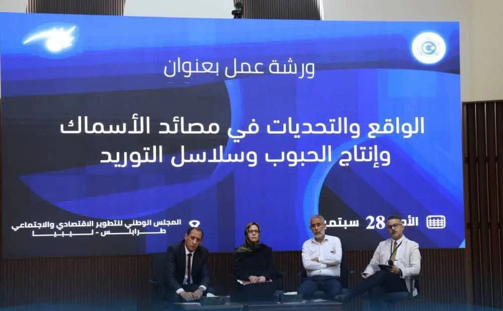 عُقدت الورشة تحت عنوان: "الواقع والتحديات في مصائد الأسماك وإنتاج الحبوب وسلاسل التوريد"، وذلك في إطار جهود المجلس لتعزيز الأمن الغذائي ومواجهة التحديات الراهنة،وحظيت الورشة بحضور رسمي واسع شمل وكيل وزارة الزراعة والثروة الحيوانية ووكيل وزارة الاقتصاد والتجارة، إلى جانب مندوبين عن الوزارات والمؤسسات الحكومية والمنظمات والبعثات الدولية في ليبيا.