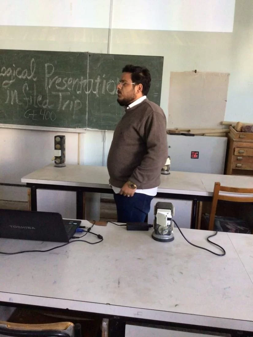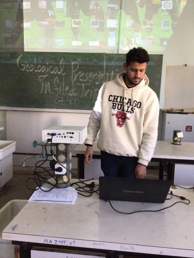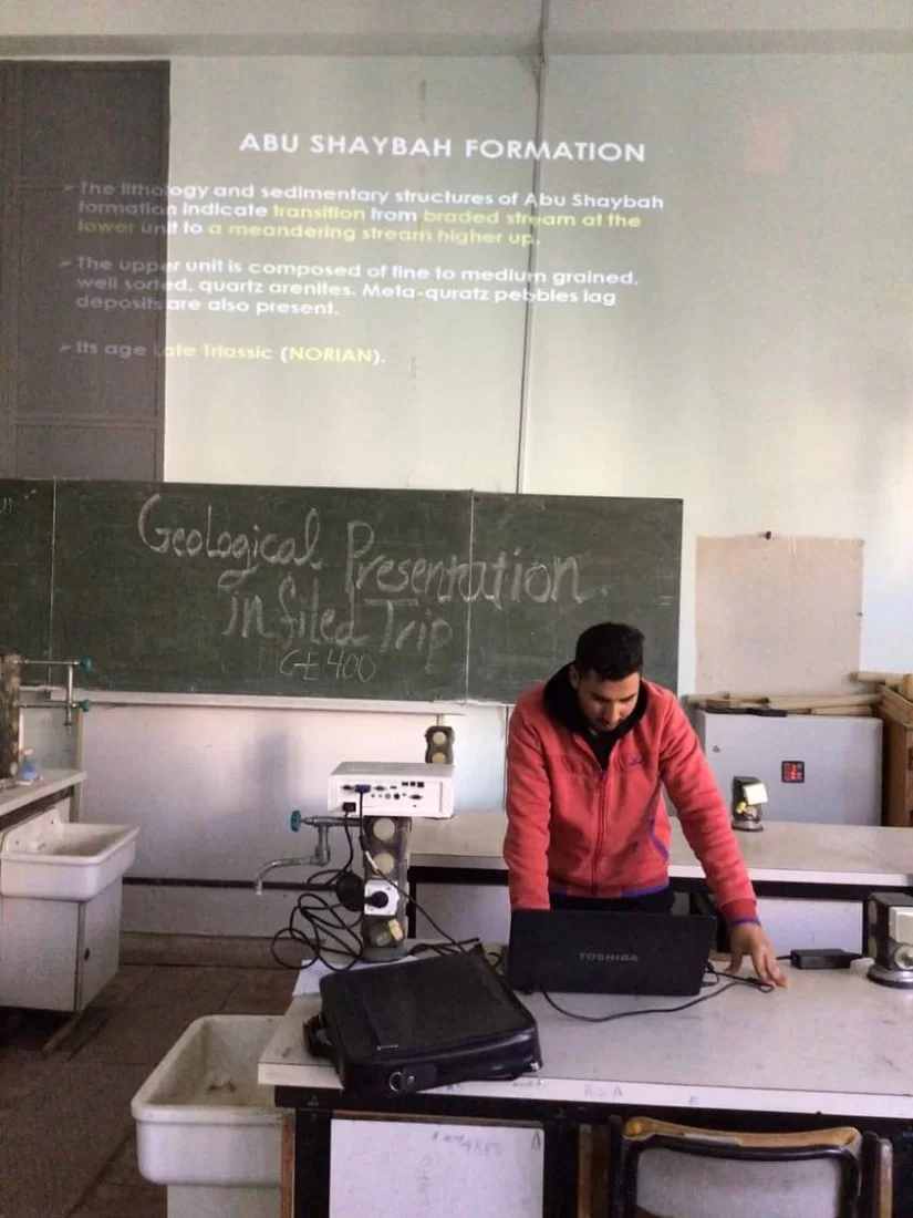 واصل ولليوم الرابع على التوالي طلاب القسم المشاركون بمقرر الجيولوجيا الحقليه GE400 في استكمال عروض لتقاريرهم العلميه اليوم الاثنين الموافق 31/01/2022 م وكل طالب على حده ، نتائج العمل الحقلي الذي قاموا به خلال الرحله الحقليه والتي كانت خلال الفتره من 23/12/2021 م وحتى تاريخ 07/01/2022 م في منطقه جبل نفوسه والتي كانت تحت إشراف الساده :