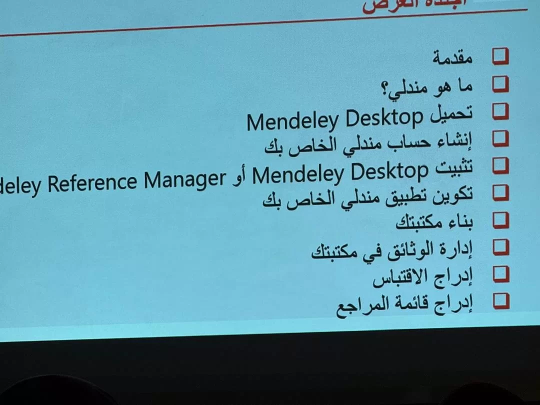 افتتح الورشة أ. د. خالد المرغني مدير مكتب الدراسات العليا والتدريب بالكلية مرحباً بالمحاضرين والسادة والسيدات الحضور من طلاب الدراسات العليا والبحاث تم قدم طالب الدكتوراة م. إبراهيم الهادي الطويل المحاضرة الاولى عن استخدام برنامج Mendeley فى ترتيب وكتابة المراجع العلمية والتى تسهم فى المحافظة على الوقت في ترتيب وإدارة المراجع العلمية خلال المسيرة البحثية للطالب. كما قام طالب الدكتوراة م. محمد البرغوث بتقديم محاضرة علمية عن العرض الاكاديمي لما له من اهمية فى اعطاء صورة واضحة عن طبيعة البحث ونتائجه.