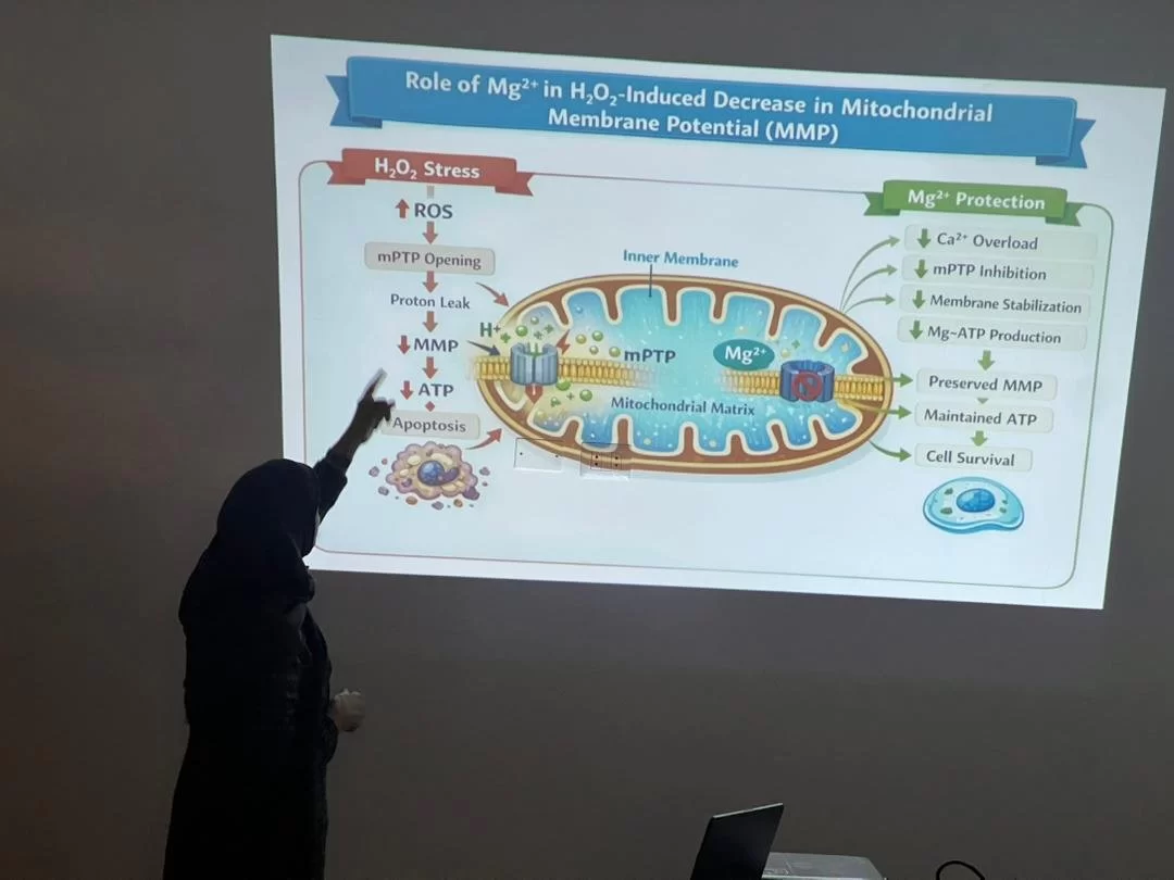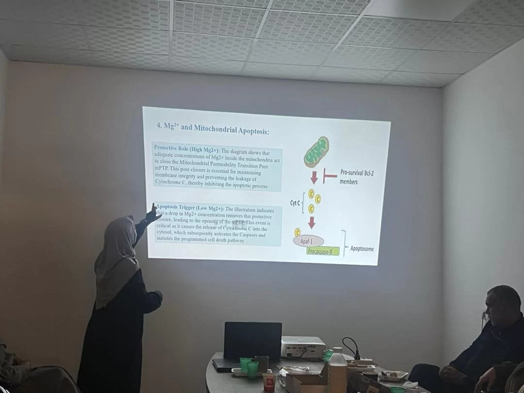 بعد انتهاء العروض، أتيحت الفرصة للنقاش، حيث تم طرح مجموعة من الأسئلة المتعلقة بالأمراض المرتبطة بنقص المغنيسيوم وتأثيراتها على التفاعلات داخل الخلية. تمحور النقاش حول سبل الوقاية من هذه الأمراض وأهمية المغنيسيوم وعلاقته بالانزيمات والفيتامينات والطاقة وفي الحفاظ على الصحة العامة، مما أضاف عمقا للأفكار المطروحة وأثرى تجربة الطلبة الأكاديمية بشكل ملحوظ.