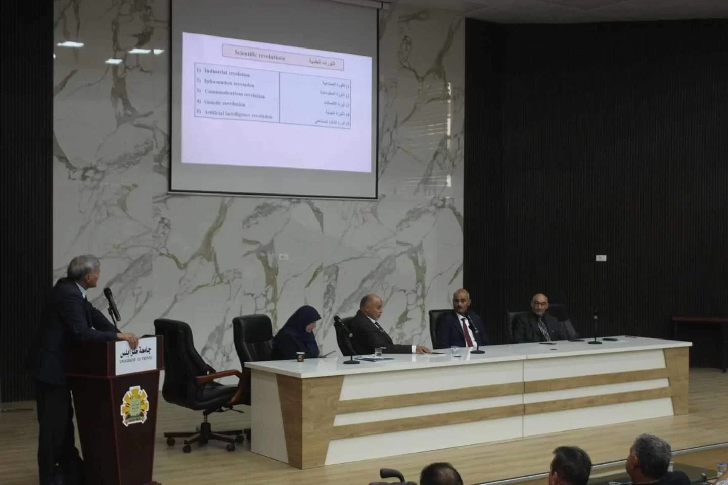 استضافت كلية العلوم بجامعة طرابلس الندوة العلمية الخاصة ببرنامج الدكتوراة المشتركة في العلوم التطبيقية اليوم الخمس الموافق 30 مايو 2024 بمدرج رشيد كعبار وذلك بالتنسيق مع مكتب التعاون الدولي بالكلية.