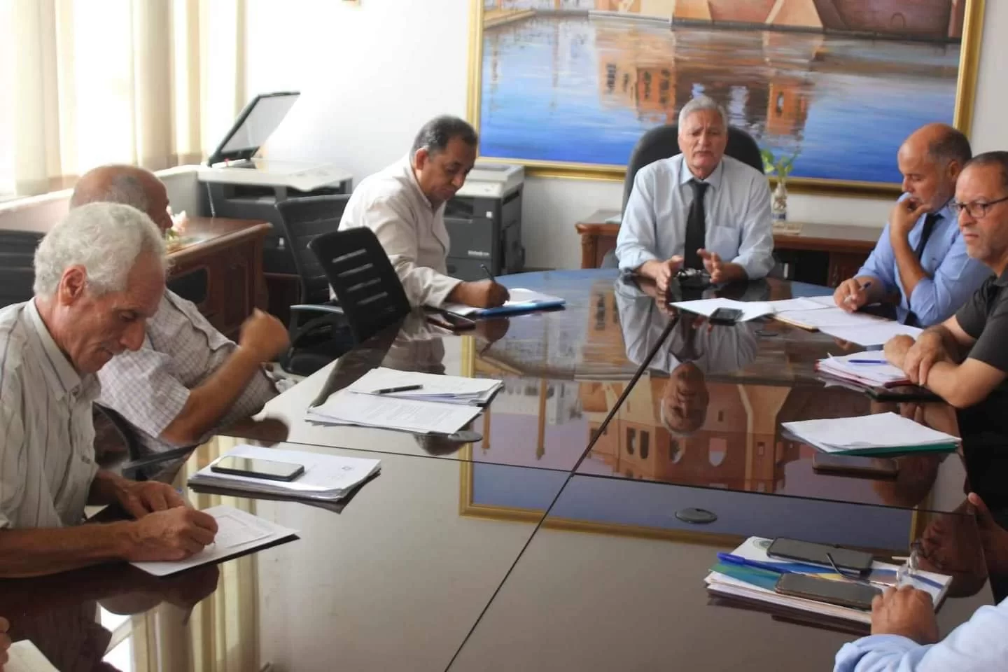 اختتم الاجتماع الواحدة ظهراً مع تاكيد اللجنة على اهمية توفير الكوادر الادارية والفنية للبرنامج وتجهيز المقر المؤقت قريبا لضمان الالتزام بالمواعيد المحددة ...