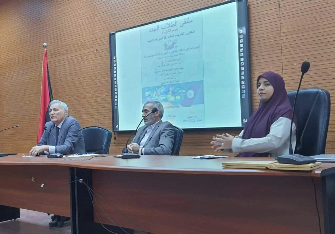 أقيم اليوم الاثنين الموافق 18/ 11 /2024م ملتقى الطلاب الجدد بقسم الفيزياء بكلية العلوم جامعة طرابلس تحت شعار بيئة علاجية أفضل .. بوجود .. اخصائي الفيزياء الطبية.