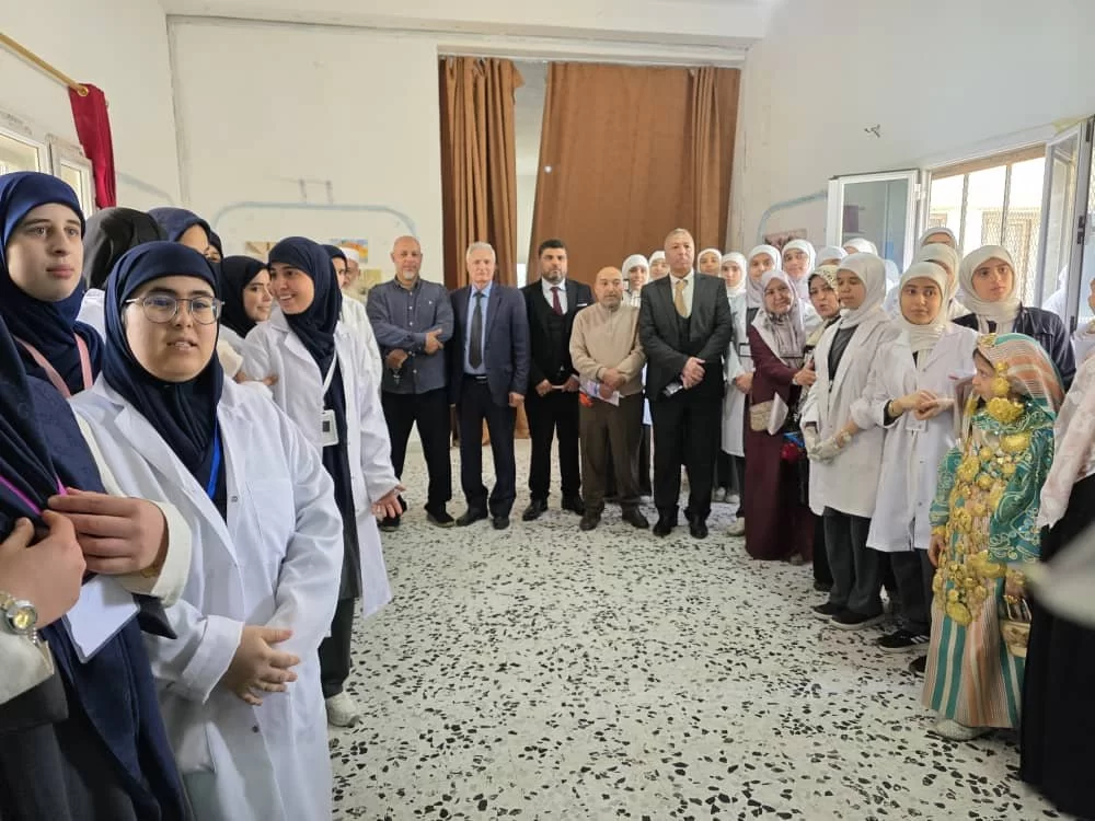 وألقى السيد أ.د. عبدالله الكلش كلمة بهذه المناسبة، نقل فيها تحيات عمادة كلية العلوم وإدارتها وأعضاء هيئة التدريس والفنيين والموظفين، معربًا عن شكره وتقديره لإدارة المدرسة على حسن التنظيم وكرم الدعوة، ومؤكدًا أن كلية العلوم تفتح أبوابها أمام الطالبات في مختلف أقسامها العلمية، وخاصة قسم الفيزياء بفروعه وشُعبه المتعددة، لإعداد جيل من العلماء والباحثين القادرين على بناء المستقبل، كما شدد على أن باب التعاون العلمي والتعليمي بين الكلية والمدرسة سيظل مفتوحًا دون تردد.