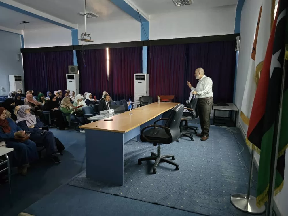 بناء على رغبة منسقي الجودة بالأقسام فقد تم دعوة الدكتور جمال اندير بإقامة ورشة عمل بعنوان " تحليل الاستبيانات باستخدام برنامج (SPSS) " يوم الاثنين الموافق 5/6/2023 وقد حضر الورشة عدد من منسقي الجودة بالأقسام وعدد من طلبة قسم الاحصاء في كل من الدراسات الجامعية والدراسات العليا، وفي نهاية الورشة تم الاتفاق على عمل فرق من طلبة قسم الاحصاء لمساعدة المنسقين في تحليل استبياناتهم بالشكل المطلوب.