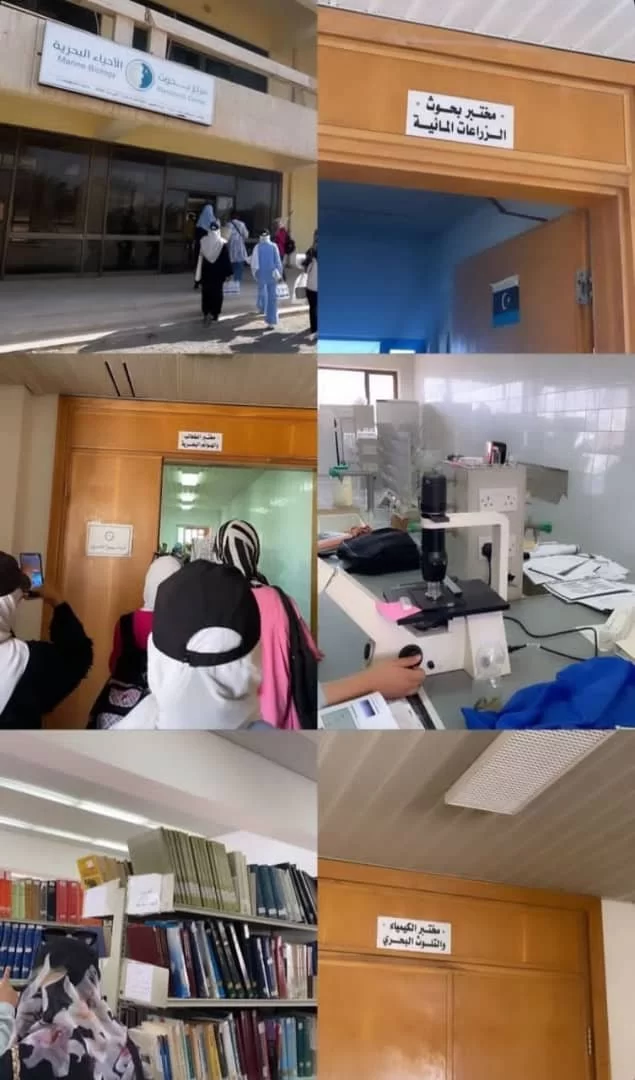 أقيمت يوم الأحد 25 يونيو رحلة علمية لمركز الأحياء البحرية بتاجوراء لطلبة مقررات لافقريات II والحشرات الاقتصادية وعلم الأحياء البحرية وعلم وظائف الحشرات بإشراف أساتذة المقررات { د.نجلاء أبوشعالة و أ.نوال محفوظ و أ.زهرة كشلوط} وقد تم زيارة معمل الطحالب والهوائم ومعمل الكيمياء ومعمل الزراعات المائية والمكتبة وتجميع عينات مائية وبرية.