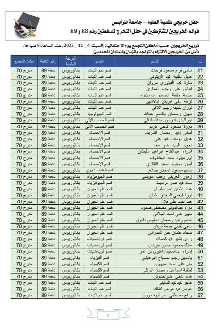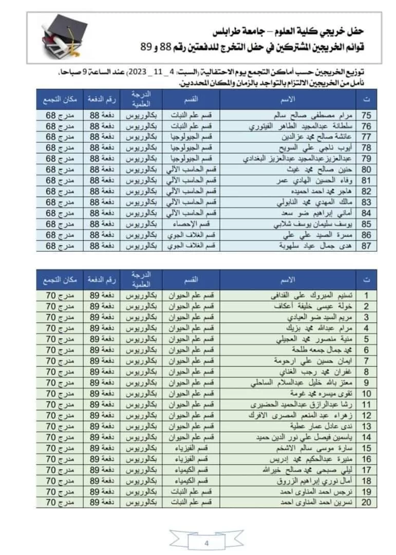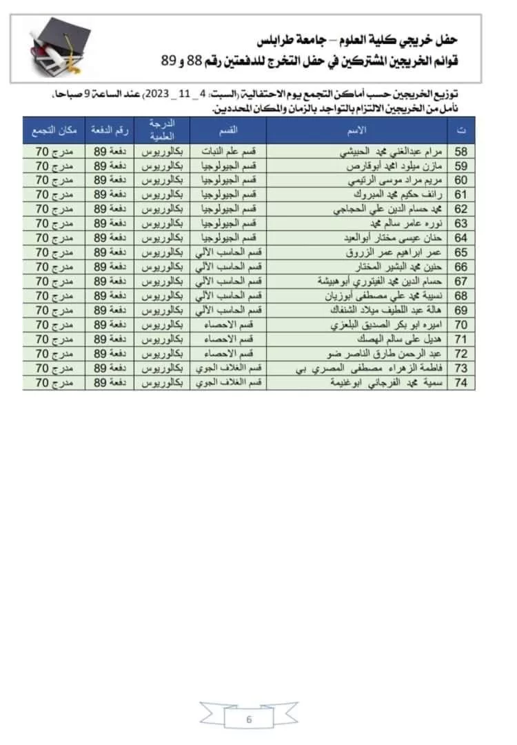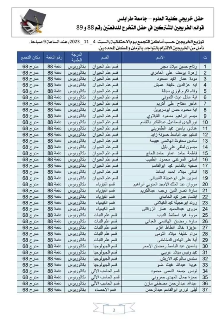 قوائم الخريجين الذين أكدوا اشتراكهم والذين سيتم تكريمهم بحفل الخريجين يوم السبت المقبل الموافق 04-11-2023م