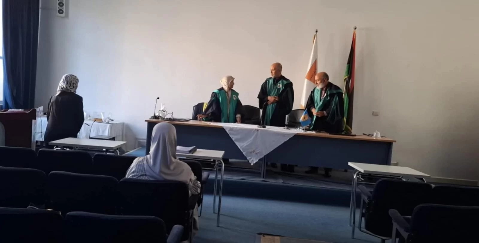 2025/10/20 م على تمام الساعة الثانية عشر صباحا مناقشة رسالة الماجستير للطالبة رحاب محمود الهادي ناصف بعنوان :
