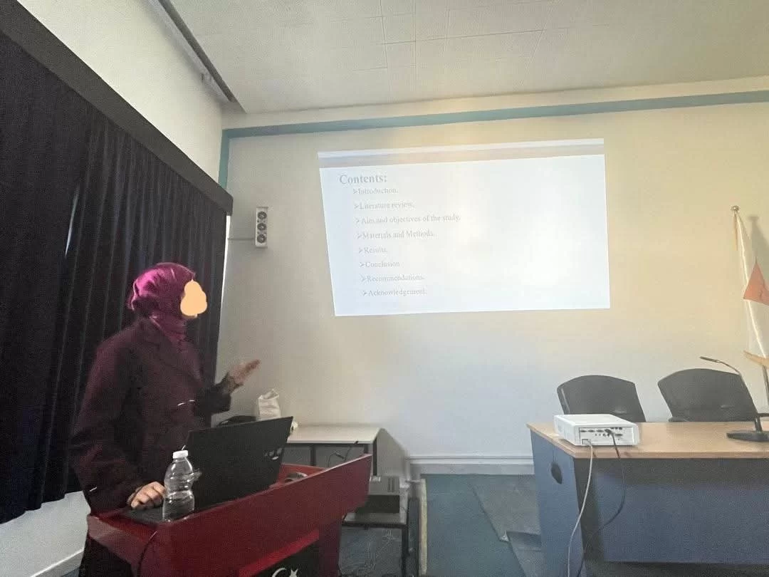 تم أمس الأحد الموافق 26 /2025/10 بفضل الله وتوفيقه مناقشة رسالة الماجستير المقدمة من الطالبة لبنى نصر الدين مصباح القاضي بعنوان " التشوهات الظاهرية وتكسر المادة الوراثية للحيوانات المنوية في الرجال المصاببن بالعقم في ليييا " وكانت لجنة المناقشة مكونة من :