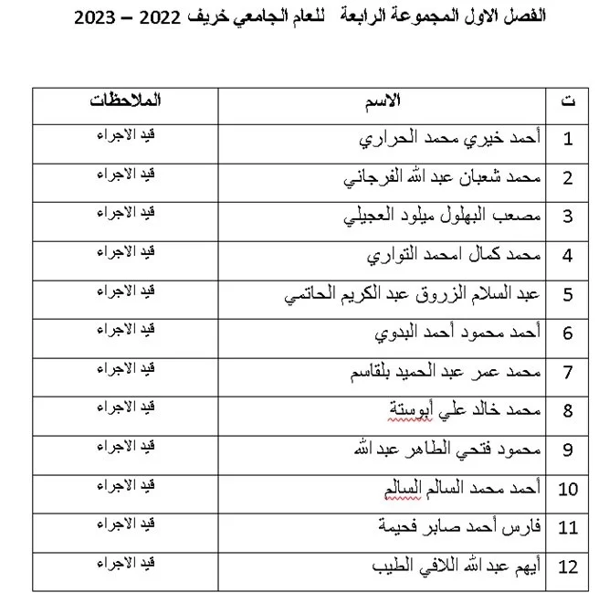 يطلب من الجميع الاطلاع على القوائم والالتزام بجدول المحاضرات كلا حسب مجموعته
