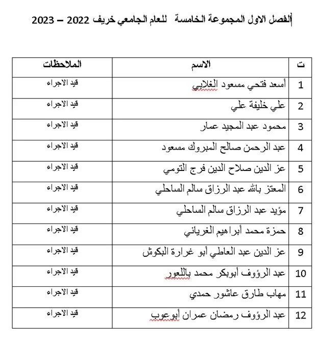 توزيع الطلبة المقبولين لفصل الخريف للعام الجامعي 2022 / 2023 على المجموعات بكلية التربية البدنية وعلوم الرياضة جامعة طرابلس