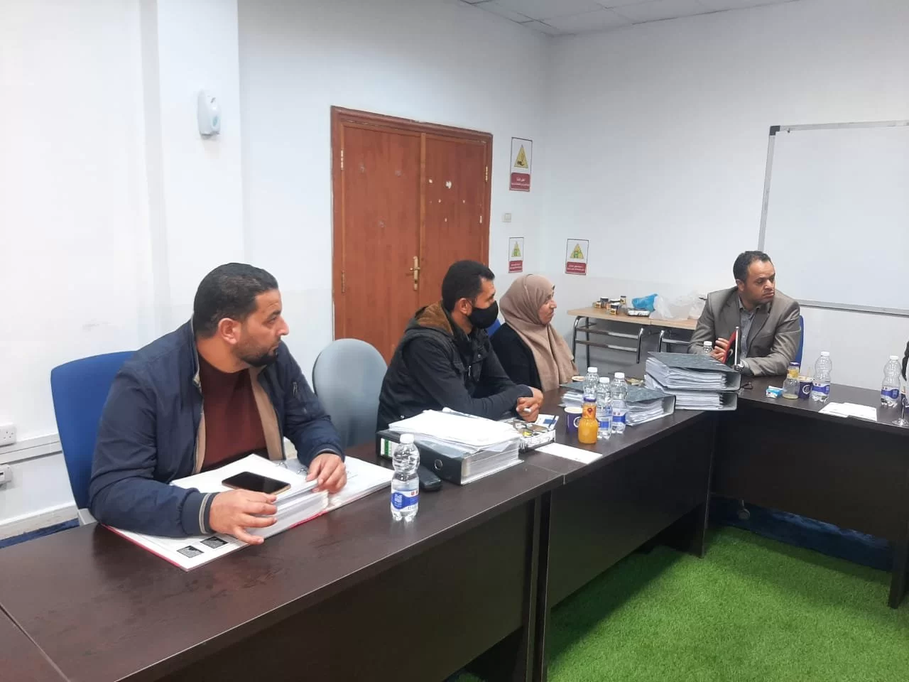 In the presence of the Director of the Office of Quality and Performance Evaluation at the University of Tripoli, represented by Dr. Bshir Alzarzah and Dr. Khairy Shaw Member of the Office of Quality and Performance Evaluation at the University of Tripoli and hosted by the Dean of the Faculty, Dr. Magdy Hamza, the Vice Dean for Scientific Affairs, Dr. Ismail Hisn and Dr. Samar Al-Alw Head of Quality Department at the Faculty Samar and the heads and members of the committees for collecting standards, evidence and evidence, who made tremendous efforts at a time Standard and carry out its tasks in the best way.