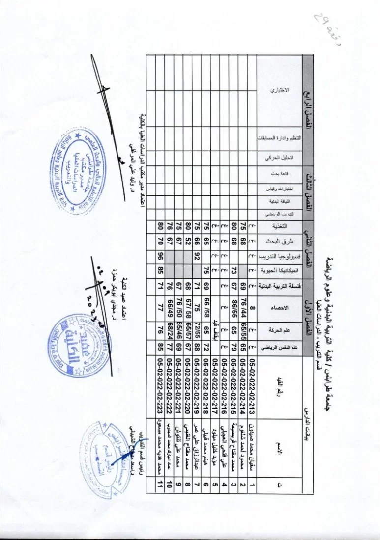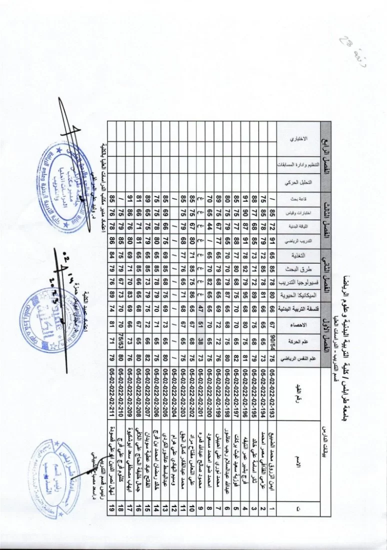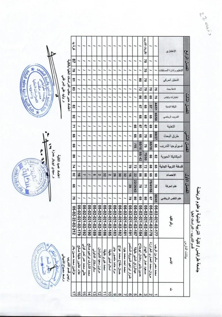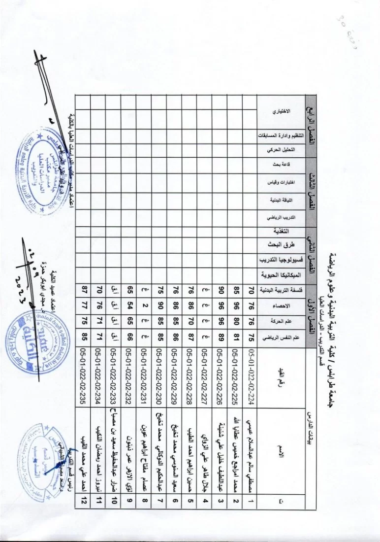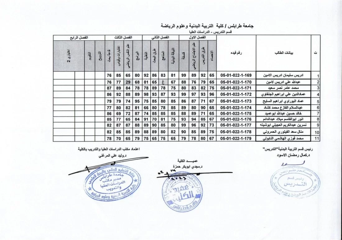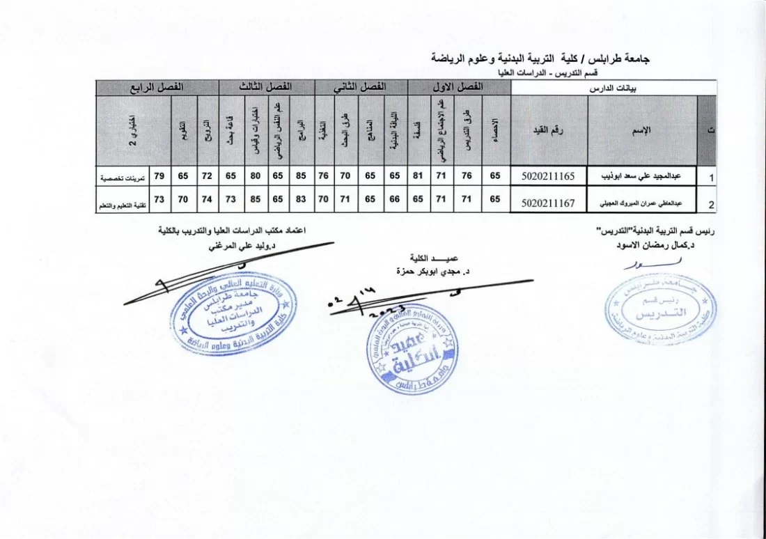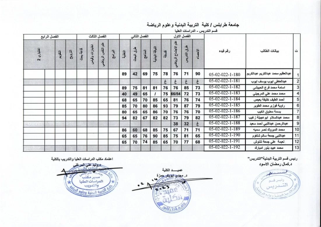 يفيدكم مكتب الدراسات العليا بكلية التربية البدنية وعلوم الرياضة بجامعة طرابلس عن نشر نتائج الامتحانات النهائية لطلبة الدراسات العليا (الماجستير) ولجميع الاقسام الدراسية (التربية البدنية (التدريس) – التدريب – إعادة التأهيل والعلاج الطبيعي)، وذلك لفصل الخريف 2022/ 2023.