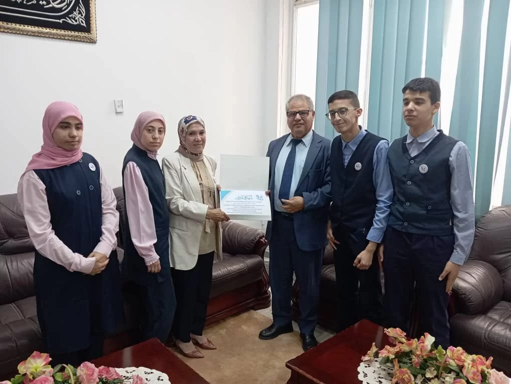 At the conclusion of the visit, the school principal, accompanied by a group of students, presented a certificate of appreciation to Prof. Dr. Ramadan Al-Jadi in recognition of his support and efforts in making the visit a success. In response, the Dean of the Faculty reaffirmed that the doors of the Faculty of Science are always open to any initiative that promotes awareness, compassion, and the integration of science with humanity.