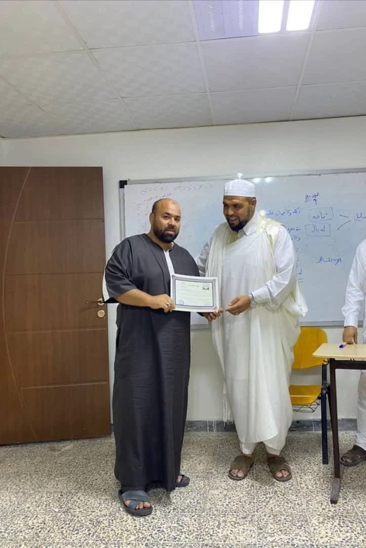 اختتام دورة: فقه المعاملات (المستوى الثاني) بحضور السيد عميد الكلية، د. الطاهر العياشي أبو نوارة، الذي ألقى كلمة تشجيعية للحضور، وقام بتوزيع الشهائد التقديرية على السادة المشاركين الملتزمين بالحضور خلال فترة الدورة، التي استمرت لمدة 12 محاضرة خلال شهر كامل، ألقاها د. أحمد سلامة