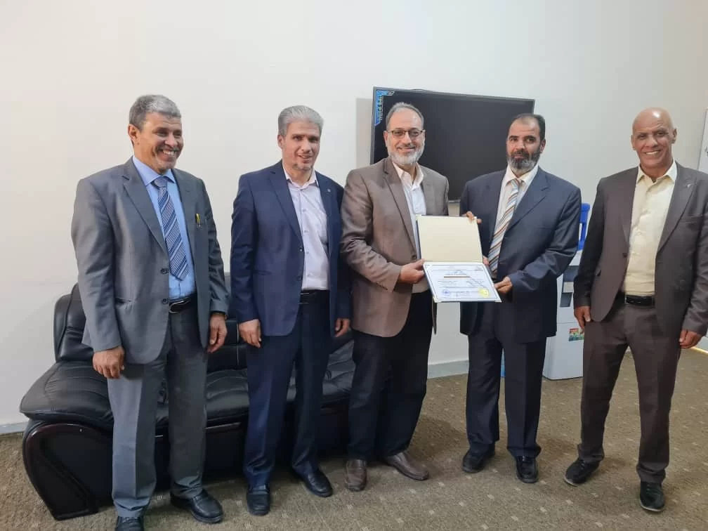 قام السيد الدكتور بشير الزرزاح رئيس مكتب الجودة بالجامعة . بزيارة للكلية وذلك لتسليم شهادة الاعتماد المؤسسي التي تحصلت عليها الكلية من مركز الوطني لضمان الجودة واعتماد المؤسسات التعليمية بالاعتماد المؤسسي لمدة 4 سنوات وذللك بالنيابة عن رئيس المركز ، هذا وكان في استقبالهم السيد عميد الكلية والسادة رؤساء الأقسام العلمية.