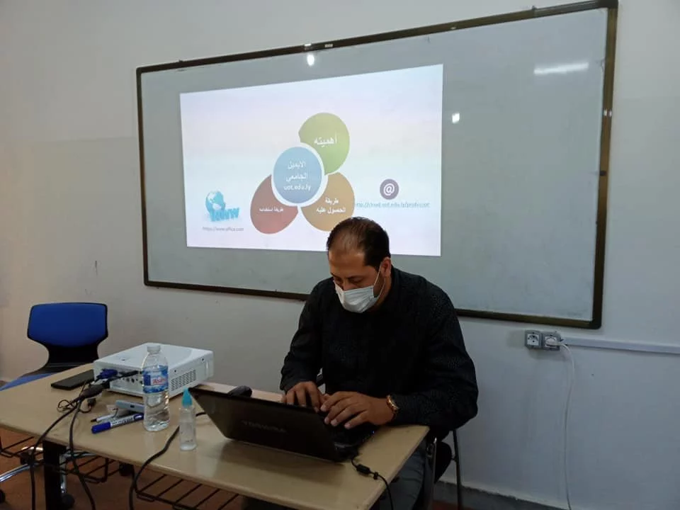 بتنظيم واشراف قسم البحوث والاستشارات والتدريب انعقدت دورة تدريبية بعنوان " كيفية الحصول على ايميل جامعي واستخدامه" ، وقد قدم هذا التدريب الأستاذ أسامة القديري رئيس قسم التوثيق والمعلومات بكلية التربية باب تاجوراء بجامعة طرابلس