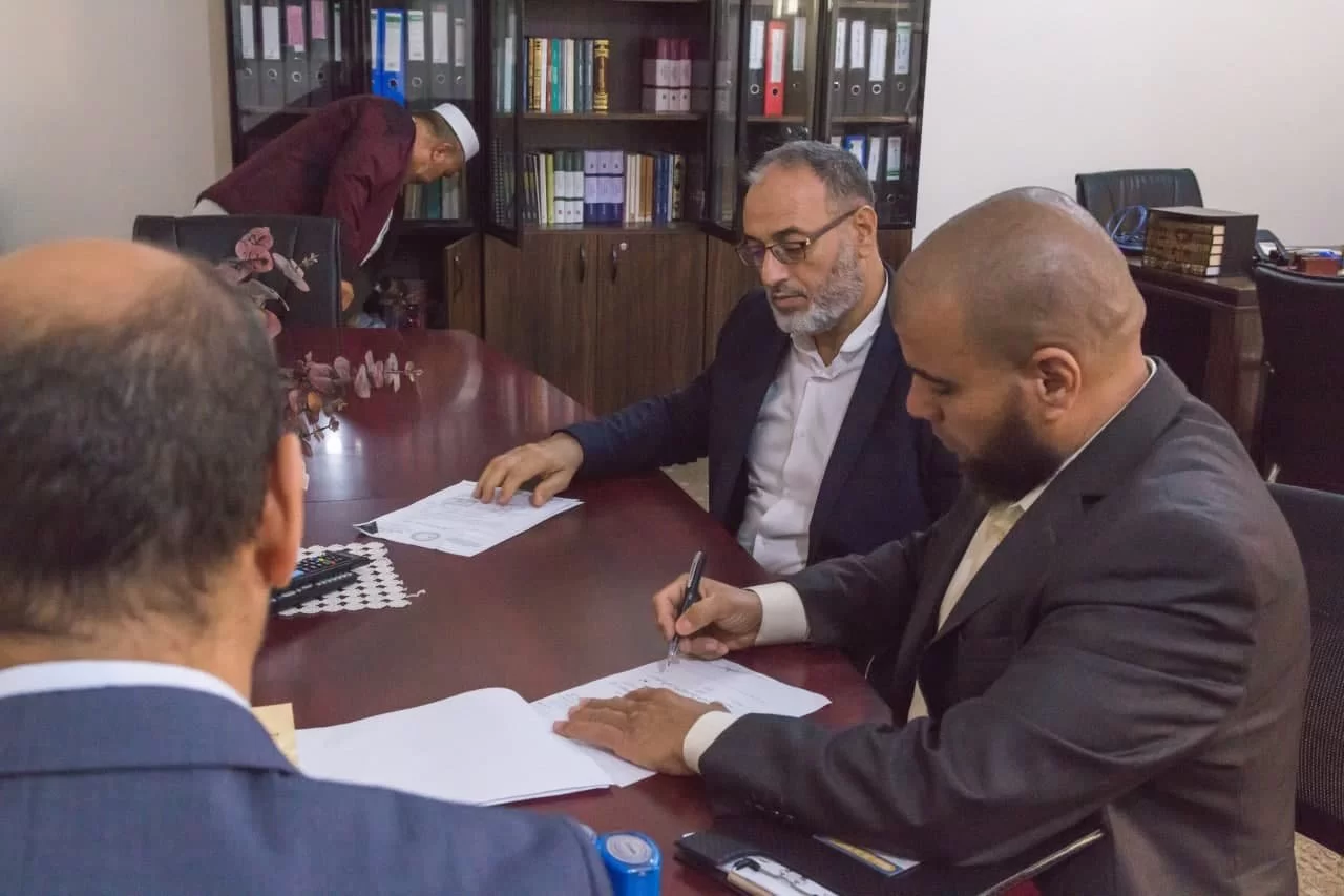 مراسم التسليم والتسلم بين عميد الكلية السابق د. عبداللطيف عبد السلام العالم وعميد الكلية الحالي د. فوزي شعبان الغرياني