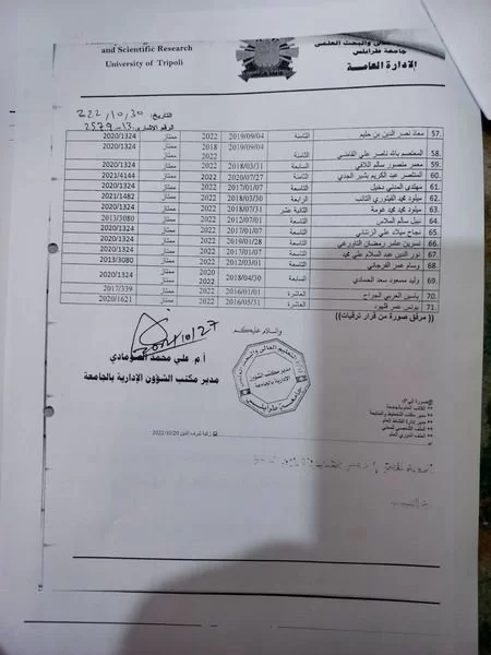 بتاريخ 2022/10/30 م تم إحالة قائمة بأسماء موظفي و موجهي إدارة النشاط العام بالجامعة والبالغ عددهم (71) موظفا وموظفة إلى مدير مكتب الشؤون المالية بالجامعة لصرف العلاوة السنوية المستحقة لموظفي و موجهي إدارة النشاط العام بالجامعة .وبهذه المناسبة أتقدم بالتهنئة أنا م .أسامة حويته مدير ادارة النشاط بالجامعة لكل الموظفين و الموجهين بالإدارة على حصولهم على علاواتهم المستحقة خلال السنوات السابقة ،وذلك بفضل الله سبحانه وتعالى وبفضل جهود الموظفين الذين ساهموا في انجاز هذا العمل والشكر موصول كذلك لموظفي و موظفات الشؤون الإدارية بإدارة النشاط العام على ماقدموه من مجهودات جبارة لإتمام هذا الإجراء بالسرعة المطلوبة دون تأخير .أيضا الشكر والتقدير للسيد / م. علي الصومادي مدير الشؤون الإدارية بالجامعة ولجنة شؤون الموظفين واللجنة المصغرة على استكمال إجراءات موظفي إدارة النشاط العام بالجامعة دون مماطلة .فهدفنا كإدارة هو حصول كامل موظفي إدارة النشاط العام على كامل حقوقهم ومستحقاتهم نظير عملهم وتفانيهم فيه .أيضا لا ننسى أن نتقدم بالشكر إلى رئاسة الجامعة متمثلة في السيد/ أ.د خالد عون رئيسًا و د. خالد غومة وكيلاً للجامعة للشؤون العلمية لدعمهم لإدارة النشاط العام على كافة الأصعدة ولوقوفهم المستمر وتشجيعهم لنا نحو الأفضل .
