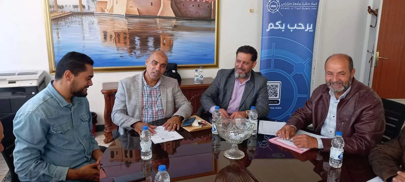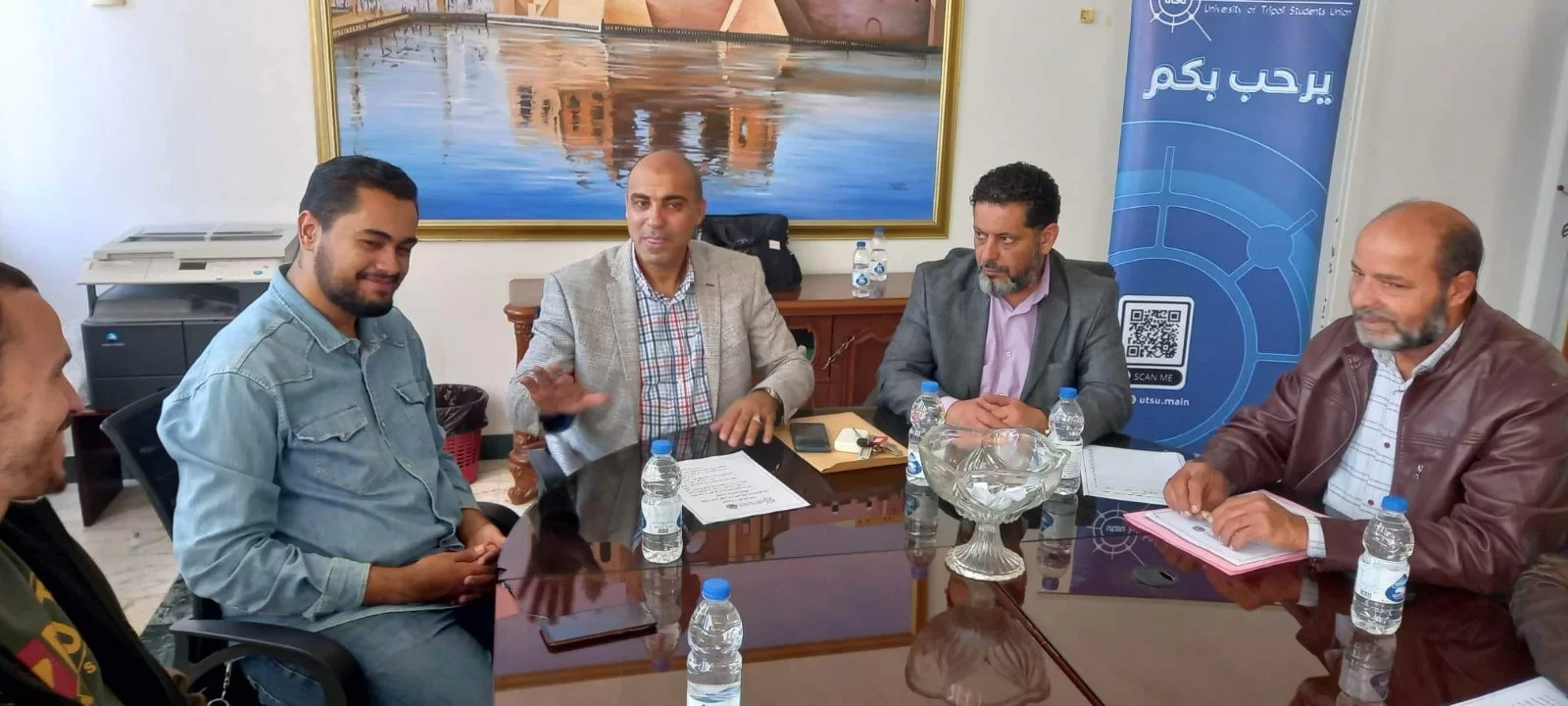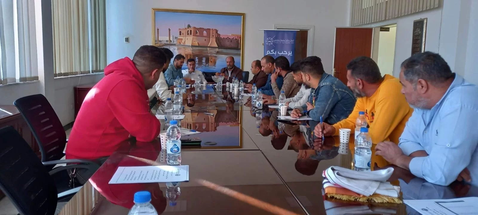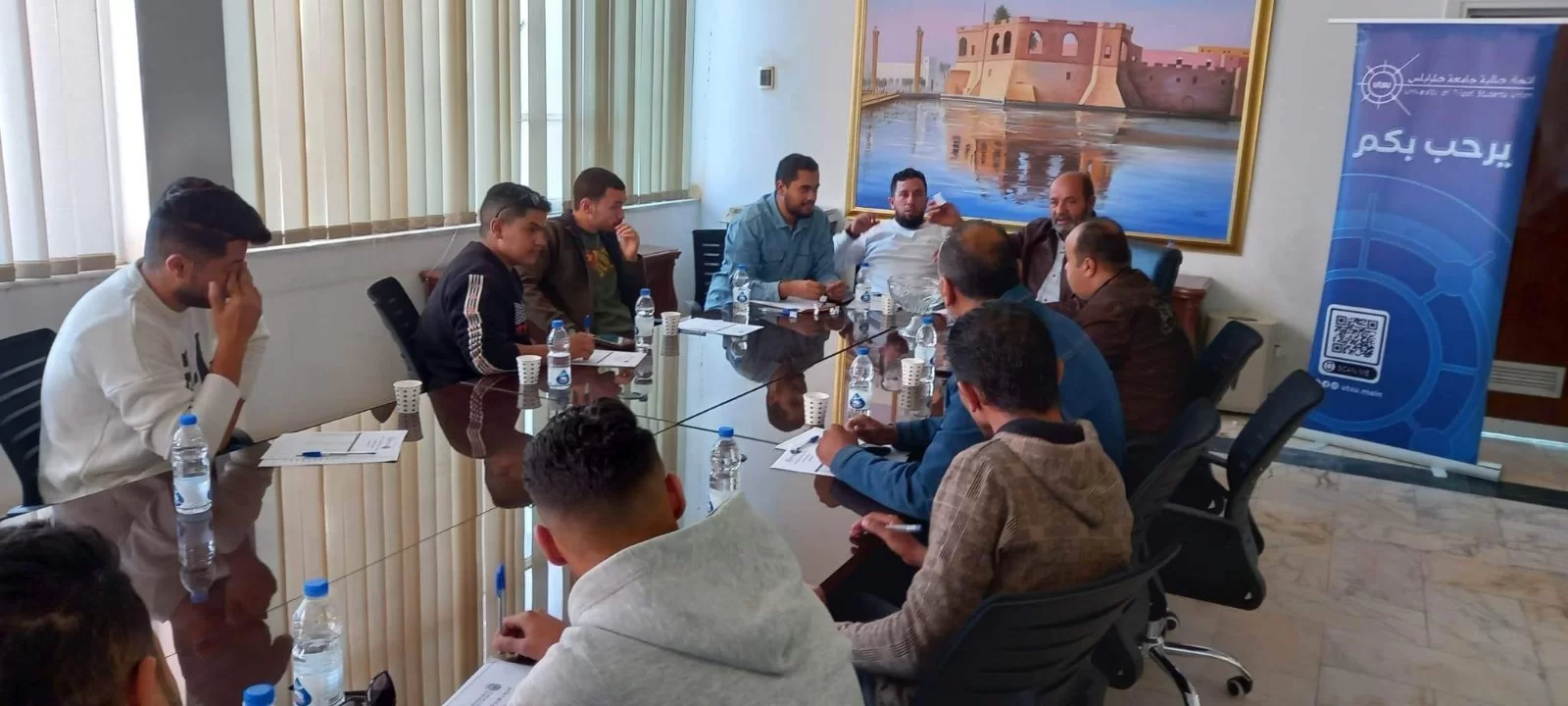 اللجنة الفنية المشرفة على بطولة كأس جامعة طرابلس في قاعة الاجتماعات بكلية العلوم