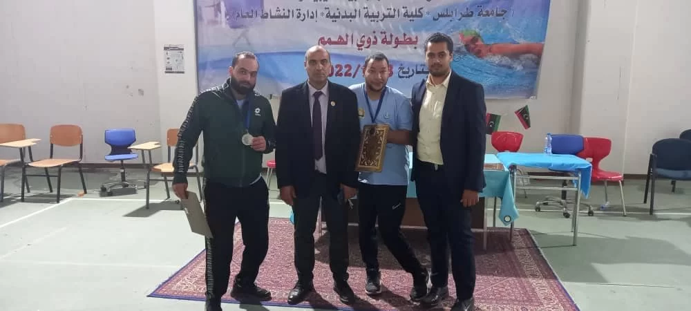 استكمالا"لبرنامج الاحتفال باليوم العالمي لذوي الهمم الذي أقيم أمس السبت الموافق 2022.12.3مأقيمت مساء اليوم ألعاب استعراضية لذوي الهمم تتمثل في ألعاب للاعاقات الحركية والمكفوفين بمشاركة من جامعة بنغازي.وفي نهاية البرنامج قام السيد د.موسى العماري مدير إدارة النشاط العام بوزارة التعليم العالي م.أسامة حويتة مدير إدارة النشاط العام بجامعة طرابلس أ.د.مجدي حمزة عميد كلية التربية البدنية والعلوم الرياضية بتوزيع الشهائد والميداليات على المشاركين من ذوي الهمم،وشهائد شكر وتقدير للضيوف الحاضرين. متابعة وتصوير صلاح الدين اللموشي