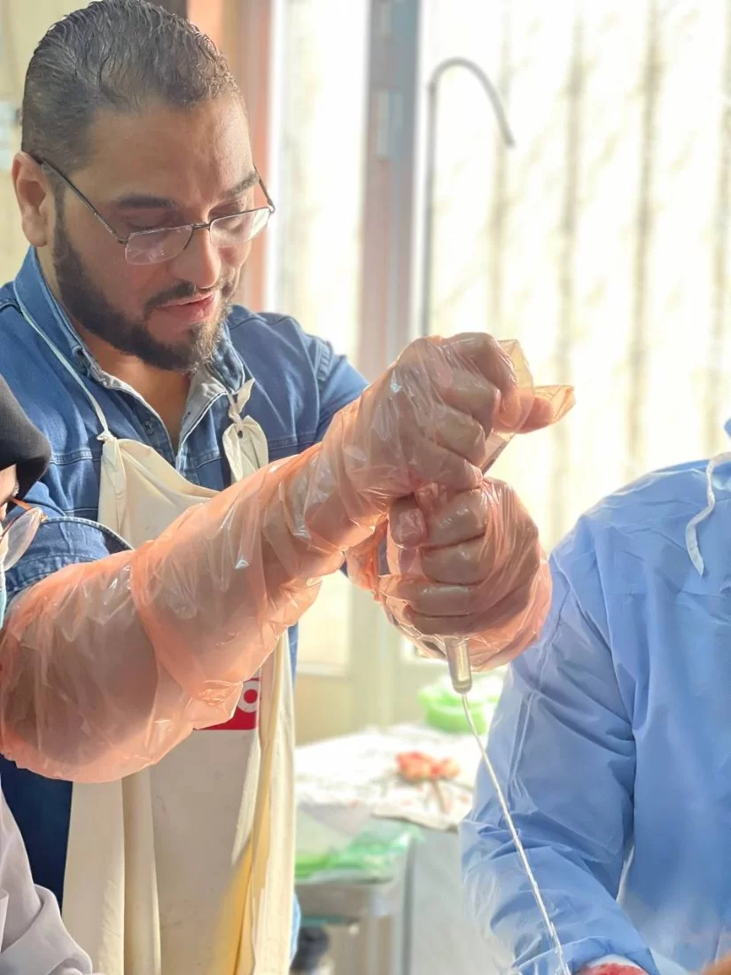 وكان ضمن العمل أعضاء هيئة التدريس بالقسم ولفيف من طلبة السنه الرابعة والخامسة. حيث شارك الطلبة بشكل فعال في علاج هذه الحالة.