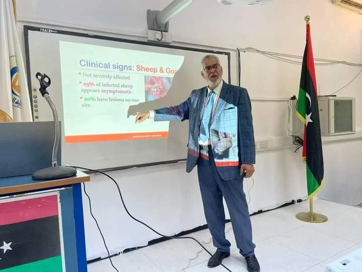 تم صباح اليوم الأربعاء الموافق 6 مارس 2024 بمدرج الدراسات العليا بكلية الطب البيطري بجامعة طرابلس عقد ندوة علمية بخصوص مرض الحمى القلاعية Foot-and-mouth disease - حضرها عدد من أساتذة الكلية و زملائنا الافاضل من المركز الوطني المركز الوطني للصحة الحيوانية و عدد من الأطباء البيطريين و زملائنا الافاضل من هيئة البيئة و الإصحاح البيئي و السلخانات و عدد من المهتمين