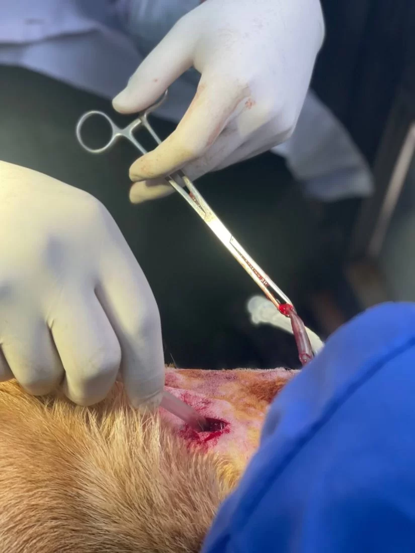 قمنا باجراء هذه العملية مرتين بسبب قيام روكي بقضم الانبوب ونزعه من مكانه.