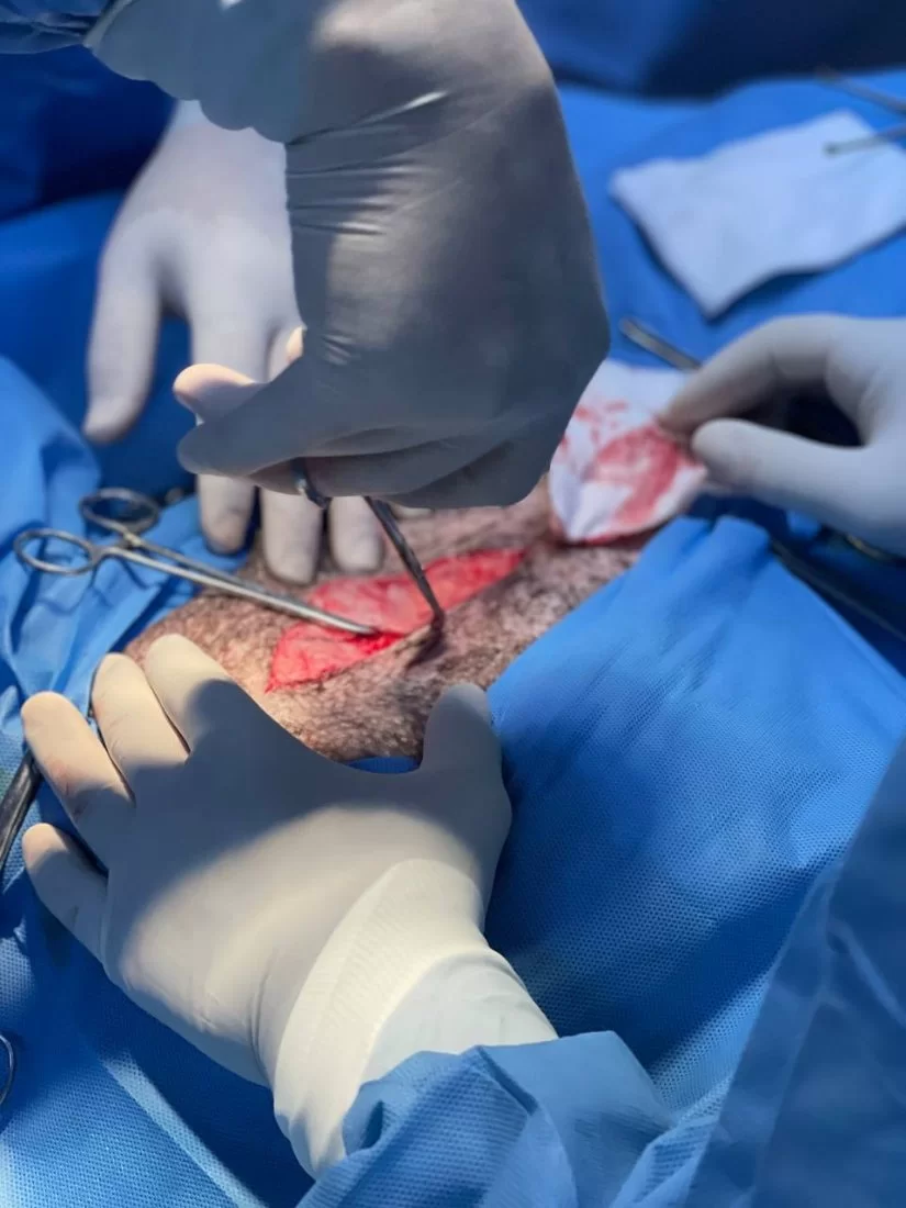 عملية ترقيع فتق إربي في كلبة.