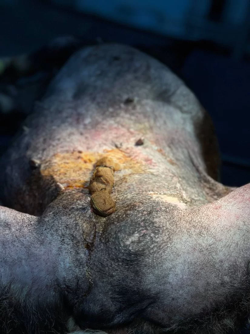 استقبل المستشفى التعليمي البيطري بكلية الطب البيطري جامعة طرابلس صباح اليوم الموافق 10/12/2024 حالة كلبة تبلغ من العمر 13 عام تعاني من انتفاخ كبير بين الفخدين، بعد الكشف الدقيق والتحاليل المعملية تم تشخيصها كفتق ( بعج) اربي