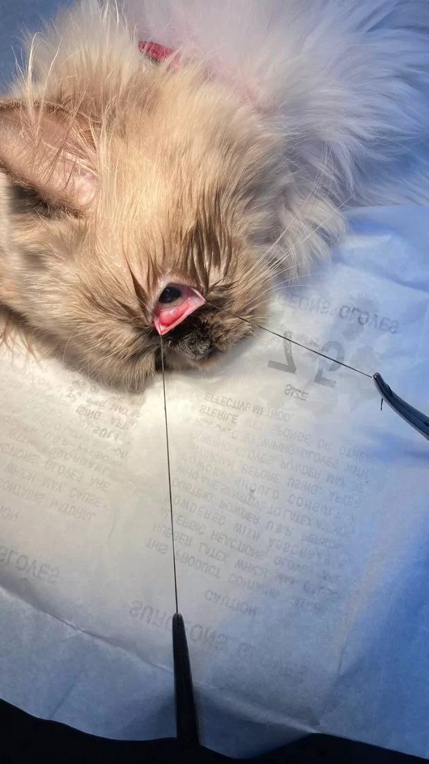 عملية جراحية لعين قط. Cherry eye