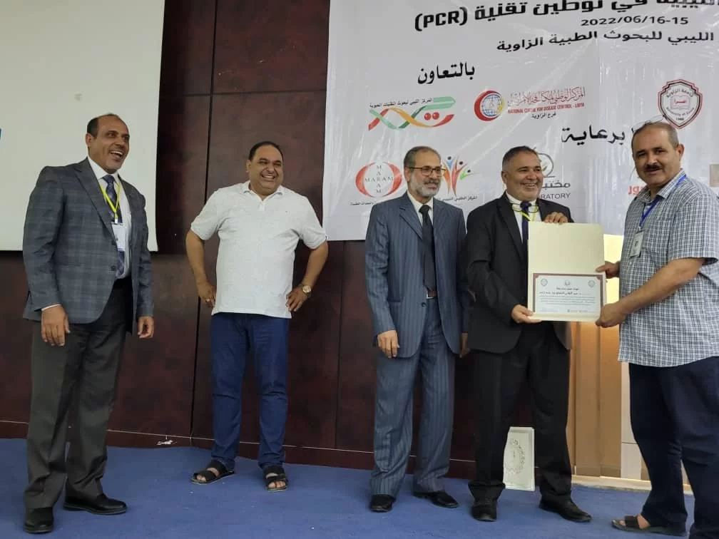 في إطار مساهمة الكلية لخدمة البيئة والمجتمع والتميز والابداع في كافة مجالات العلوم الطبية وتقديم الخدمات والاستشارات العلمية والفنية للجامعة والمجتمع على المستوي المحلي والإقليمي، شارك مجموعة من أعضاء هيئة التدريس مما لديهم خبرة في مجال تقنية التشخيص الجزيئي في الملتقى الطبي الثالث حول تقنيات التحليل الجزيئي الذي أقيم بالمركز الليبي للبحوث الطبية بالزاوية بيومي 15,16 يونيو لسنة 2022 برعاية كل من كلية التقنية الطبية بجامعة الزاوية والمركز الليبي للبحوث الطبية وتعاون كل من مركز مكافحة الامراض والمركز الليبي للتقنيات الحيوية. وقد شارك الأساتذة بالعناوين التالية: