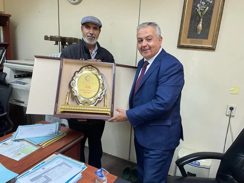 في إطار التعاون المشترك بين كلية الطب البيطري والمركز الوطني للصحة الحيوانية تم صباح اليوم الثلاثاء الموافق 26-12-2023 تسليم درع مهدىً من المركز الوطني للصحة الحيوانية للسيد عميد كلية الطب البيطري أ. د لطفي موسي بن علي عبر السيد الدكتور أسامة رجب الواعر المنسق المكلف ببرنامج التعاون المشترك بين ك