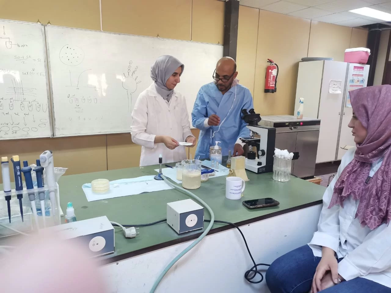 وكان الطلبه سعداء جدا بتعلمهم طرق سيتم استعمالها عند اجراء بحوثهم والشكر موصول لفني المعمل الخبير احمد الخواجة الذي ساهم بشكل كبير في سير العملي بشكل منظم جدا.